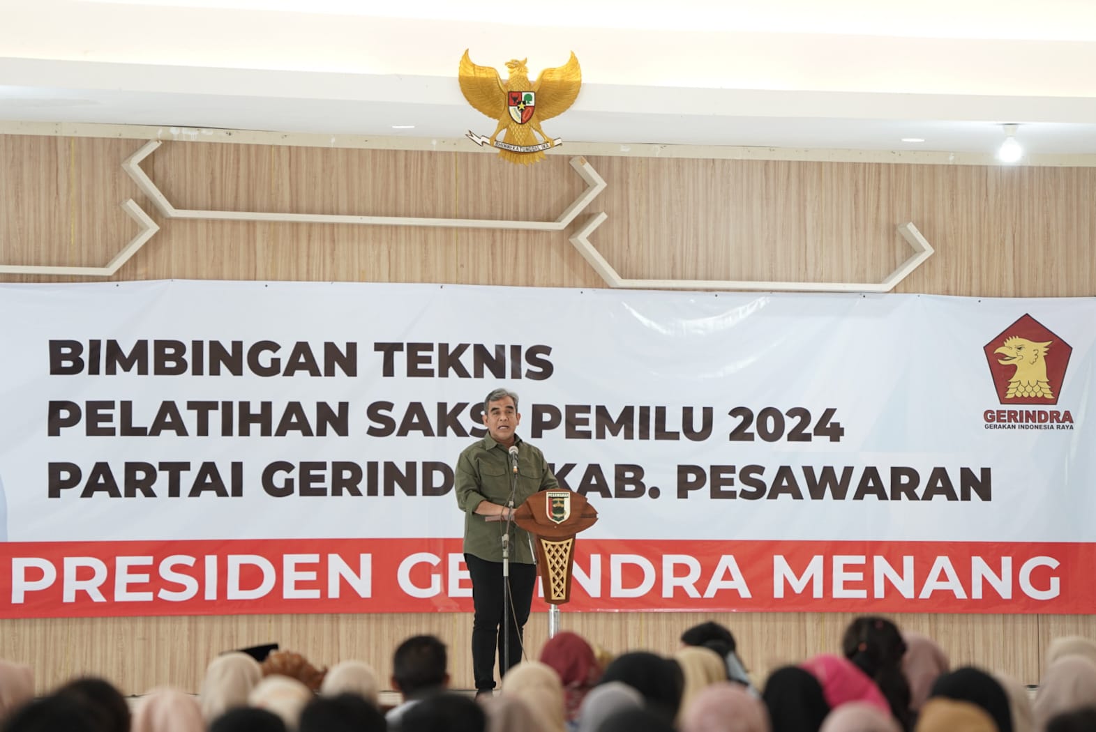“Saksi adalah tim sukses terkahir partai Gerindra. Tugasnya tidak hanya memantau penghitungan suara. Saudara harus cek bahwa TPS buka jam 7 dan tutup jam 1 siang. Cek menjelang penutupan TPS mana pemilih yang belum datang maka dijemput untuk segera memilih, pastikan mereka untuk coblos nomor 2 Prabowo-Gibran menang Pilpres 2024,” kata Muzani.