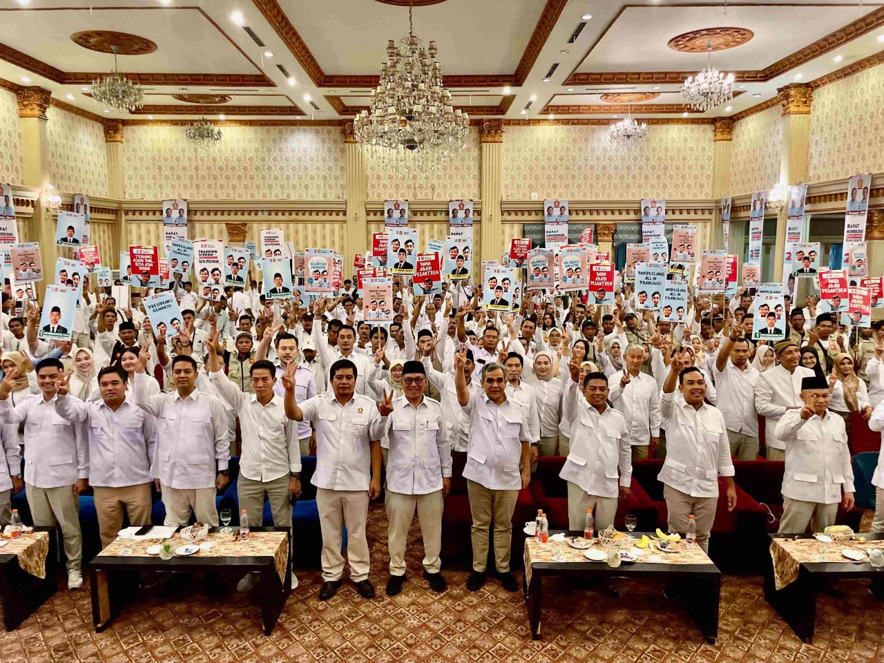 “Semalam Pak Prabowo makan malam dengan Pak Jokowi. Kalau kemudian Pak Jokowi makan bareng dengan Pak Prabowo lantas itu ditafsirkan sebagai dukungan sah sah saja. Tapi lebih dari itu, Pak Jokowi berharap kepemimpinannya bisa dilanjutkan oleh Pak Prabowo. Bahwa presiden Jokowi ingin Pak Prabowo melanjutkan apa yang sudah dibangun oleh beliau selama 10 tahun ini,” kata Muzani dalam pidatonya.